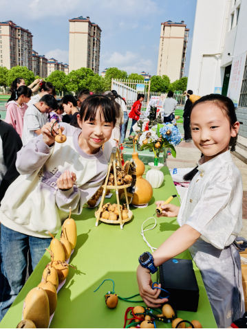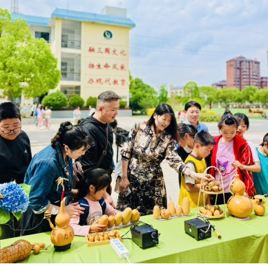 合肥市南門小學(xué)恒盛皇家花園校區(qū)葫蘆烙畫社團(tuán)賀彎飛老師及社團(tuán)學(xué)生,用烙鐵在葫蘆表面“烙”出深淺紋路,展現(xiàn)“以火為筆”的傳統(tǒng)技藝。