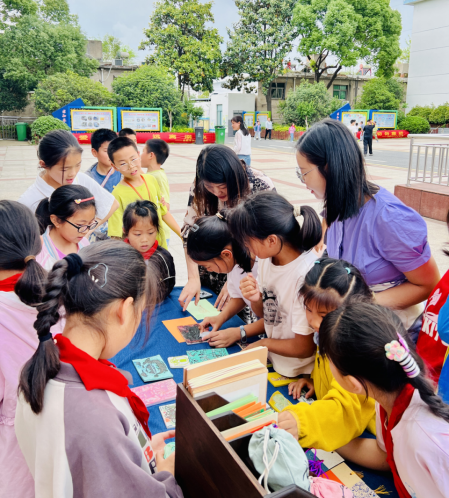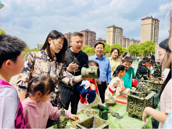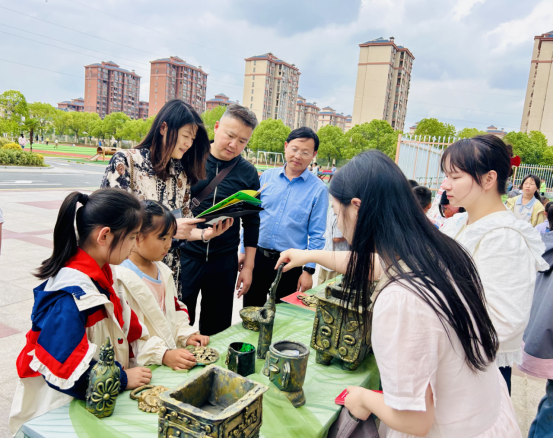 廬陽區(qū)教體局教研室副主任李霞、美術(shù)教研員張勇,古城小學(xué)黨支部書記、校長范衛(wèi)星、副校長李小菲,杏林小學(xué)副校長趙媛媛,以及賀彎飛、張育紅名師工作室成員、廬陽區(qū)美育骨干教師、古城小學(xué)全體師生共同參與?;顒右浴八徒躺祥T”打破校際壁壘,讓非遺技藝從博物館、城區(qū)課堂“行走”至古城校園,實現(xiàn)“教育強(qiáng)區(qū)”建設(shè)中“一個都不能少”的美育追求。
