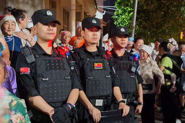 為構(gòu)建全方位、無死角的安保防線,廣南公安累計(jì)投入警力200人次,對“皇姑節(jié)”活動路線出入口、核心路段等重點(diǎn)部位進(jìn)行安全隱患排查。同時(shí),以派出所為依托,警務(wù)室為支撐,志愿者隊(duì)伍為輔助力量,構(gòu)建起“守點(diǎn)、巡線、防片、管面”的動態(tài)警務(wù)模式。執(zhí)勤民警輔警穿梭在賓客之間,時(shí)刻保持高度警惕,及時(shí)發(fā)現(xiàn)并妥善處置各類安全隱患。在舞臺周邊、美食街區(qū)等人員密集區(qū)域,增派大量警力,確保游客在欣賞精彩表演、品嘗美食的過程中能夠安全無憂。從場地安檢到秩序維護(hù),民警輔警用專業(yè)的安保措施和貼心的服務(wù),為“皇姑節(jié)”每一個(gè)環(huán)節(jié)筑起了一道堅(jiān)固的銅墻鐵壁。