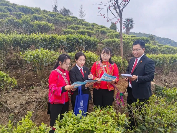 在一起土地承包經(jīng)營權(quán)糾紛中,平河人民法庭就地開展巡回審判,并就常見的山林水土糾紛對旁聽村民進(jìn)行普法宣傳、答疑解惑,力促“審理一案、治理一片”。針對各類糾紛中反映出的農(nóng)戶法律意識淡薄、交易往來憑證不規(guī)范等情況,2個法庭運(yùn)用“村、企下單,法庭接單,進(jìn)村入戶”的模式,走進(jìn)茶園、橡膠林、田間地頭,開展針對性、系統(tǒng)性的精準(zhǔn)普法活動,有效滿足轄區(qū)群眾多元化的法治需求,提升群眾法治素養(yǎng),厚植營商環(huán)境法治沃土。