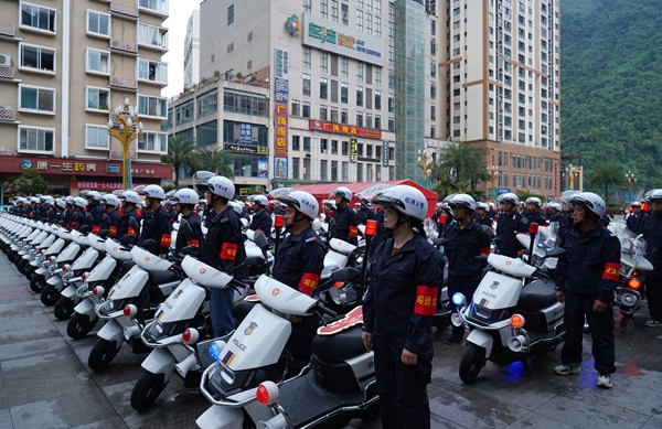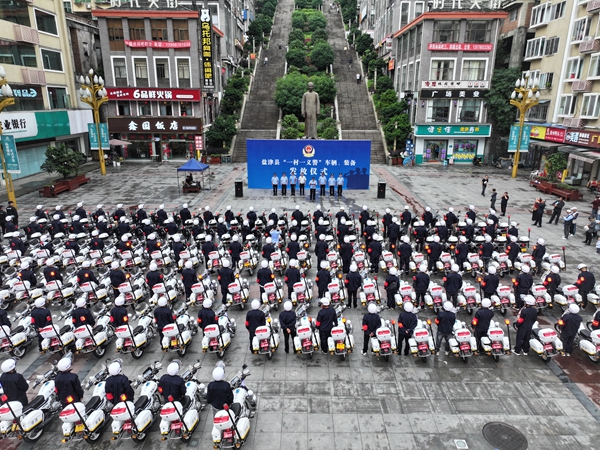 近日,云南省昭通市鹽津縣在黃葛槽新區(qū)廣場舉行“一村一義警”車輛、裝備發(fā)放儀式,為全縣100個(gè)村、社區(qū)配發(fā)123輛警用摩托車。