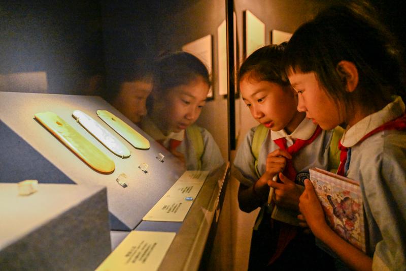 2025年5月16日,在安徽省安徽博物院,來(lái)自合肥市廬陽(yáng)區(qū)林店街道六安路小學(xué)榮城花園分校的小學(xué)生正在博物院參觀學(xué)習(xí)。在5月18日國(guó)際博物館日即將到來(lái)之際,林店街道團(tuán)工委聯(lián)合轄區(qū)小學(xué)開展“快速變化社會(huì)中的博物館未來(lái)”主題活動(dòng),學(xué)生們通過(guò)觀看文物展覽,學(xué)習(xí)歷史知識(shí),感受文化魅力。 (廬陽(yáng)區(qū)人民政府)