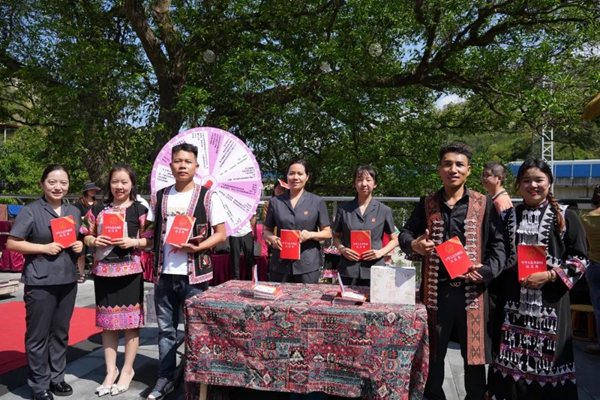 5月20日,在社交平臺(tái)被“轉(zhuǎn)賬520”甜蜜浪潮霸屏?xí)r,云南省紅河州元陽縣人民法院以司法溫度重構(gòu)浪漫,在元陽縣南沙鎮(zhèn)那里傣陶民俗村公園式結(jié)婚登記活動(dòng)現(xiàn)場(chǎng),展開一場(chǎng)關(guān)于“愛的方程式”的法治解碼。