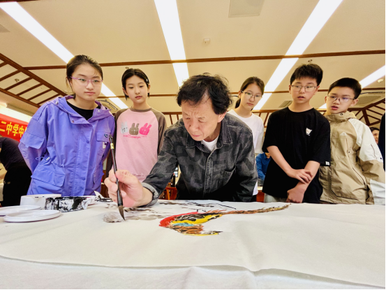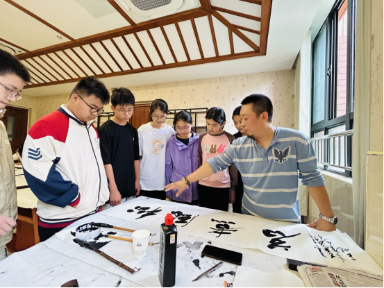 在師生交流環(huán)節(jié),學生們積極踴躍,紛紛就自己在藝術創(chuàng)作中的困惑、對作品的理解等問題向藝術家們請教。藝術家們耐心解答,分享創(chuàng)作心得與感悟,現場互動氛圍濃厚。同學們表示,通過與藝術家面對面的交流,自己對書畫藝術有了更深層次的理解,也更加堅定了追求藝術夢想的決心。這一互動環(huán)節(jié),正是美育浸潤行動中“以美育人、以文化人”的具體體現,讓“Yue動廬陽歡樂校園”的理念通過實際交流得到傳遞。