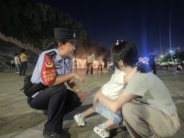 “像群眾尋求幫助找走失兒童這樣的警情,我們時常會遇到,尤其最近江城縣正在舉辦縣慶假日購物節(jié)暨美食展活動,人流量很大,游客稍微不注意就很容易和家人走散,最多的一天我們幫找到3人。我們在街面上巡邏,老百姓能時時刻刻看得到我們,他們心里也自然就有了安全感!”柴蓉介紹道。