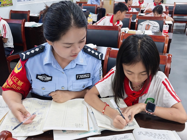 “三江虹女子巡防隊”持續(xù)深入開展“橙色暖陽”行動護航未成年人成長,自2023年9月起,在勐烈邊境派出所的推動下,一個由駐地黨員、社工、老師、女警組成的課后公益組織“四點半課堂”熱熱鬧鬧地開辦起來,在下午四點半放學后至晚上九點提供課后托管服務,對學生開展作業(yè)輔導、興趣培養(yǎng)、安全常識等內(nèi)容的教授,從一定程度上解決了放學兒童看護空檔難題。