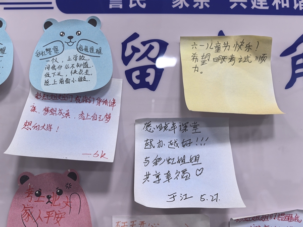自習室的“祝福墻”被孩子們的心愿與祝福層層覆蓋,字里行間滿是對“彩虹姐姐”的眷戀。其中那句“愿四點半課堂越辦越好!與彩虹姐姐共享幸福。”格外醒目。每每看到這些文字,“三江虹女子巡防隊”隊員們心里總是暖洋洋的,她們深知,每一次堅守都因百姓的肯定與認可而意義非凡。