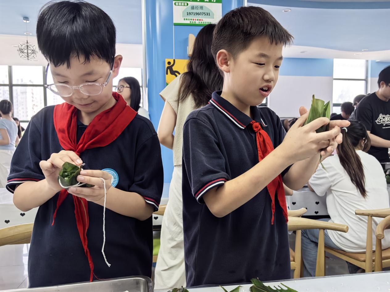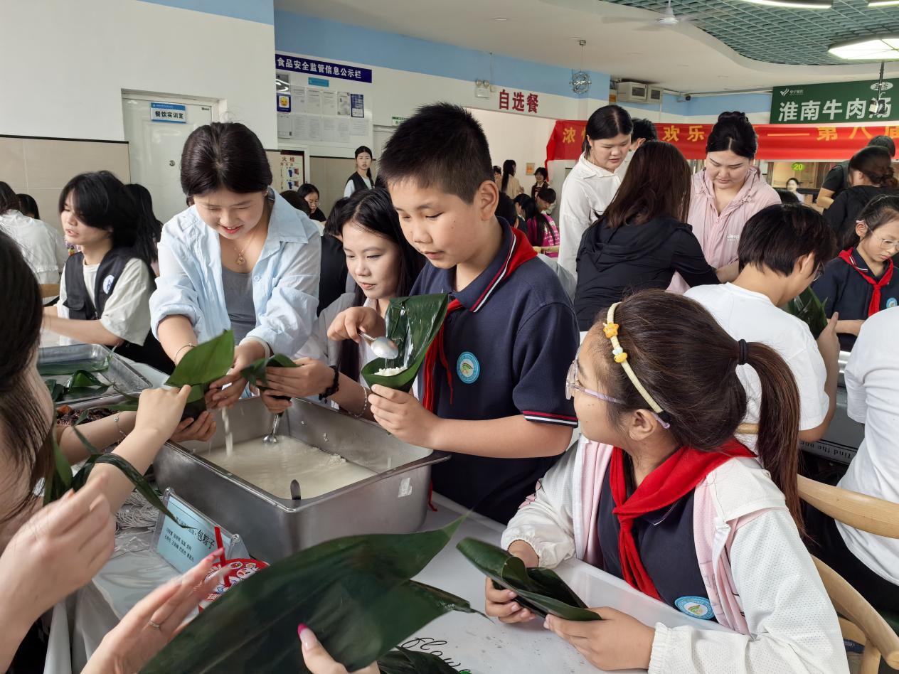 迎著午后的驕陽,四河小學(xué)的學(xué)生們走進(jìn)安徽中澳科技職業(yè)學(xué)院的校園,開啟了充滿趣味與挑戰(zhàn)的勞動實(shí)踐之旅。在包粽子環(huán)節(jié),中澳學(xué)院的大學(xué)生志愿者們變身“小老師”,手把手教小學(xué)生們?nèi)绾螌Ⅳ杖~折成漏斗狀、填糯米、放餡料、扎緊繩子。小學(xué)生們學(xué)得認(rèn)真,雖然一開始手法生疏,但在一次次嘗試后,不少同學(xué)都成功包出了形狀各異的粽子?,F(xiàn)場歡聲笑語不斷,粽葉飄香,洋溢著濃濃的節(jié)日氛圍。