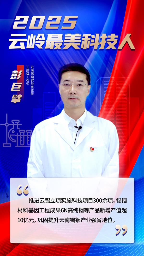 彭巨擘長(zhǎng)期聚焦錫銦領(lǐng)域應(yīng)用基礎(chǔ)研究及成果轉(zhuǎn)化,近三年推進(jìn)云錫立項(xiàng)實(shí)施科技項(xiàng)目300余項(xiàng),錫銦材料基因工程成果6N高純銦等產(chǎn)品新增產(chǎn)值超10億元。牽頭實(shí)施錫銦砷全產(chǎn)業(yè)鏈重大科技專項(xiàng),開(kāi)發(fā)低溫焊錫膏等新產(chǎn)品4種,帶動(dòng)新增產(chǎn)值超1.2億元,項(xiàng)目成果行業(yè)領(lǐng)先。