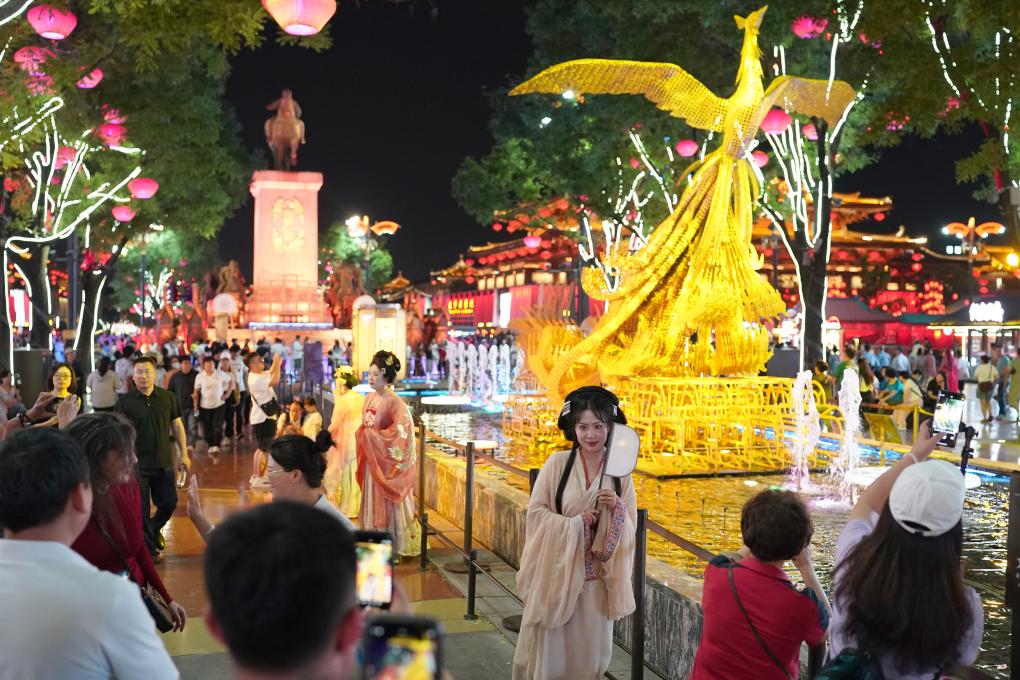 游客在西安大唐不夜城景區(qū)游覽(2024年5月20日攝)。新華社記者 邵瑞 攝
