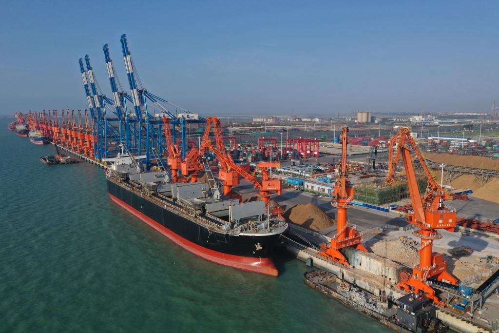 繁忙的廣西北海鐵山港(2022年9月攝,無(wú)人機(jī)照片)。新華社記者 黃孝邦 攝