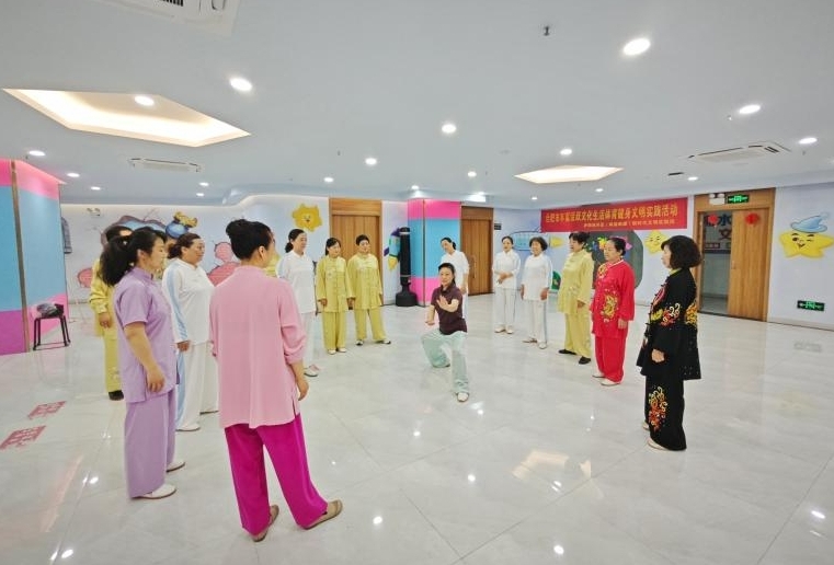 在社區(qū)活動(dòng)室中,楊老師穿梭于白發(fā)學(xué)員之間,手掌輕托一位老人的肘部,腳尖微調(diào)另一人的步伐。她耐心地重復(fù)著:“馬步要穩(wěn),氣要沉,勁從根生。”這樣的場景,正是社區(qū)傳統(tǒng)武術(shù)課堂的日常。