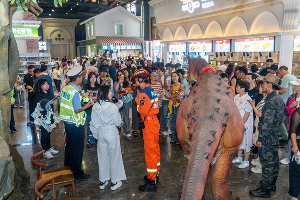 “交警和消防員太有梗了,這不比綜藝有意思嗎?”圍觀的游客不禁感嘆?!霸颇虾苊?,我很喜歡這里。希望大家用火用電要注意安全,要遵守交通法規(guī),這樣才能平平安安?!睆倪|寧來的游客小朋友拿著交警消防文創(chuàng)禮包開心地說。