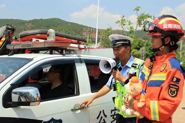 圍繞“人人講安全、個個會應(yīng)急——查找身邊安全隱患”第24個全國“安全生產(chǎn)月”主題,6月13日,云南省公安廳交通管理總隊、云南省消防救援總隊聯(lián)合云南交投集團昆明西管理處、祿豐市消防救援大隊等相關(guān)單位在昆楚高速恐龍山服務(wù)區(qū)開展第24個全國“安全生產(chǎn)月”暨交通安全“美麗鄉(xiāng)村行”巡回宣傳活動。
