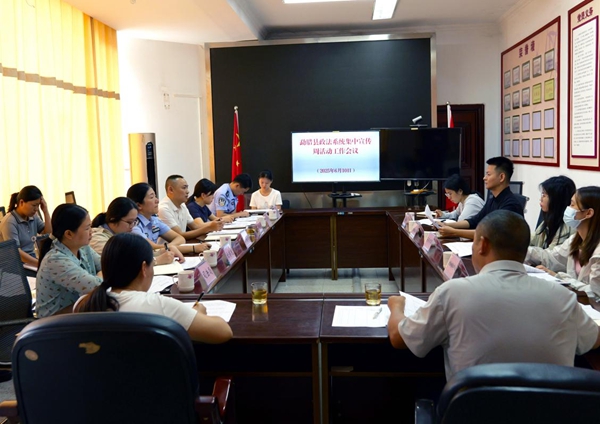 (采訪組與勐臘縣政法機(jī)關(guān)召開宣傳策劃會)