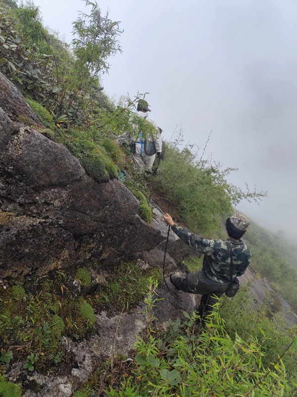 沿著父輩的足跡,2014年,迪志新正式成為界務員。他守護的42號界樁是巡護路途中比較艱險的一處,山高坡陡,叢林蔽日,往返一趟常需三四天。而巡邊之路,步步驚心:雨中蜷縮在自制的塑料膜帳篷里取暖是常事,毒蛇出沒、狗熊窺伺、螞蟥肆虐更是家常便飯。迪志新指著巡邊背包淡然道:“一抓一把螞蟥!鞋子、褲子、大腿上都是。”然而,生死考驗從未動搖他的意志,每次成功到達42號界樁,在五星紅旗前唱響國歌時,愛國守邊的初心最滾燙:“界樁比生命更貴重!”