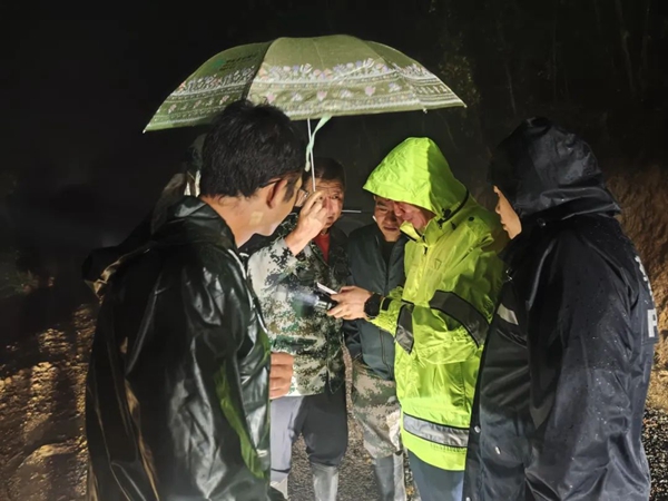 23時(shí)50分,救援人員終于在一處布滿碎石的山坳中發(fā)現(xiàn)了7名被困群眾。此時(shí)他們已經(jīng)在雨中淋了近8個(gè)小時(shí),體力嚴(yán)重透支,救援人員立即為他們披上雨衣,送上熱水和食物,考慮到夜間山路濕滑,救援隊(duì)采取“前引后護(hù)”的方式護(hù)送被困人員緩慢下山。
