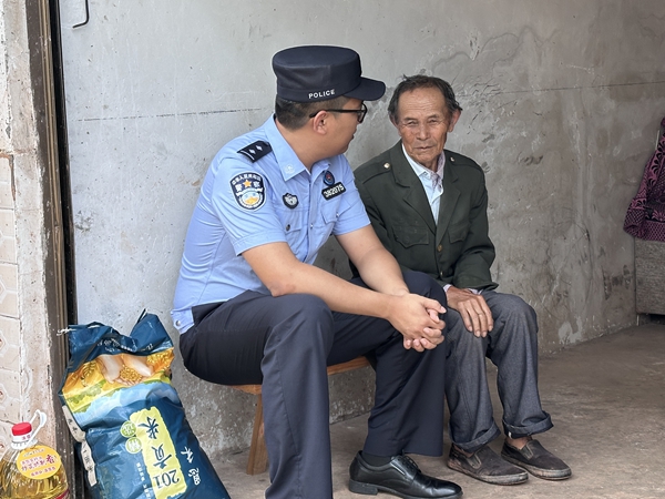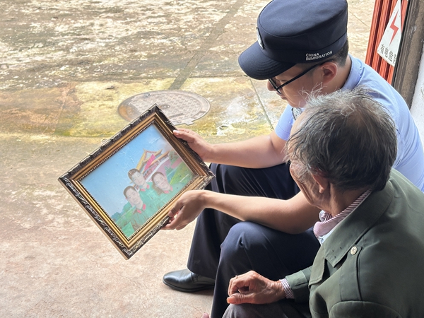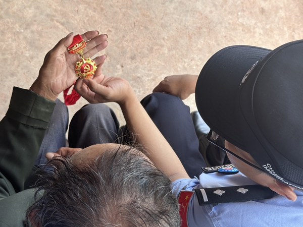 在民警們關(guān)切的目光下,老人的雙手微微顫抖。他摸索著打開相框右上方一個(gè)縫制緊密的小布袋。一枚沉甸甸的“光榮在黨五十年”紀(jì)念章滑落掌心,金屬的涼意與歲月的重量同時(shí)蘇醒。他抬起頭,臉上深深嵌入的皺紋,如同大地久旱的裂痕。他開口,聲音遲緩而含混:“記不清了……”