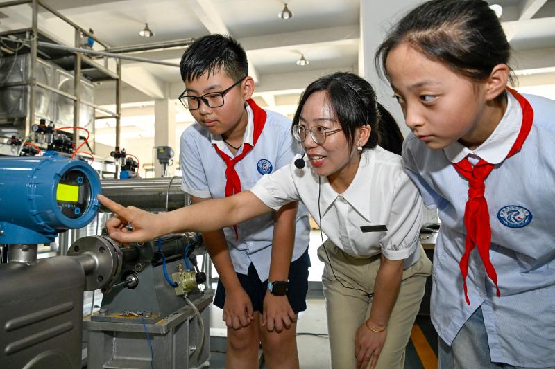 2025年7月3日,在廬陽經(jīng)開區(qū)天河社區(qū)天維儀表有限公司儀器儀表生產(chǎn)車間,來自六安路小學(xué)榮城花園分校的小學(xué)生正在參觀學(xué)習(xí),感受計(jì)量之美。暑期來臨,合肥市廬陽區(qū)各中小學(xué)紛紛開啟豐富多彩的研學(xué)活動(dòng),幫助學(xué)生拓寬學(xué)習(xí)視野,感受科技魅力,充實(shí)假期生活。(廬陽區(qū)人民政府)