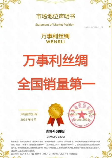 在國(guó)家全面推進(jìn)傳統(tǒng)產(chǎn)業(yè)轉(zhuǎn)型升級(jí)的戰(zhàn)略背景下,我國(guó)絲綢行業(yè)領(lǐng)軍企業(yè)萬(wàn)事利絲綢近日交出亮眼答卷。尚普咨詢集團(tuán)最新數(shù)據(jù)顯示,該企業(yè)2024年絲綢制品及面料全國(guó)銷(xiāo)量(不含港澳臺(tái)地區(qū))位居行業(yè)首位,這一權(quán)威認(rèn)證標(biāo)志著中國(guó)絲綢產(chǎn)業(yè)邁入以科技創(chuàng)新引領(lǐng)高質(zhì)量發(fā)展的新階段。