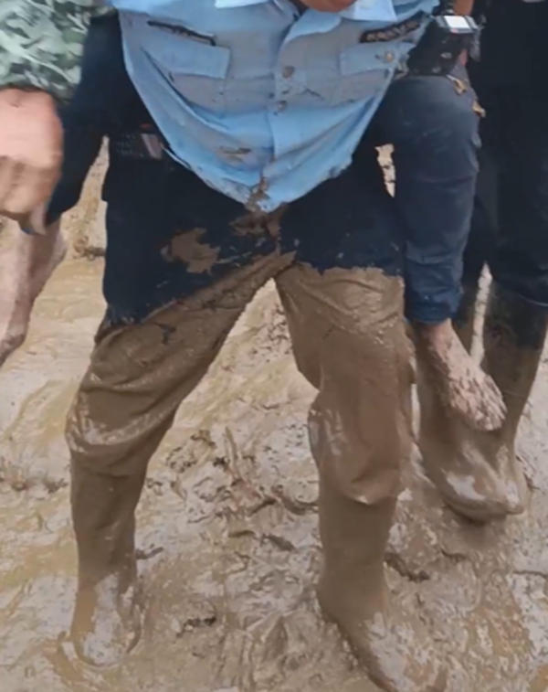 “屋里有個(gè)老人被困,不知道人怎么樣了?!迸沙鏊拥饺罕姷木o急求助,附近執(zhí)勤輔警鄒東璂第一時(shí)間趕往現(xiàn)場(chǎng)。然而進(jìn)村道路已經(jīng)被泥石流堵住,鄒東璂只能徒步進(jìn)村,到達(dá)被困老人家時(shí),只見(jiàn)泥漿還在不斷倒灌,鄒東璂徑直往里走,越走泥漿越深,已到齊腰的位置?!袄先嗽诶锩媲闆r未知,我沒(méi)想太多就進(jìn)去了?!?/p>