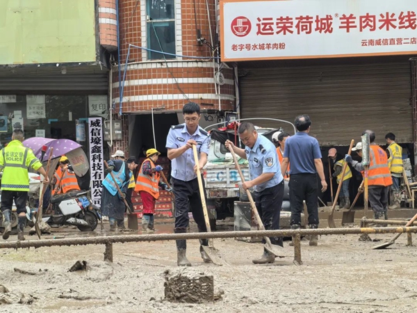 7月11日,隨著河流水位緩緩?fù)巳?,洪水退去的痕跡里,昭通公安民警輔警的身影依然忙碌,他們馬不停蹄地轉(zhuǎn)戰(zhàn)災(zāi)區(qū)重建工作,手持鐵鍬、掃帚、鋤頭等工具,在滿是淤泥的街道上奮力搶險(xiǎn),遇到群眾有困難迅速上前幫助,用實(shí)際行動(dòng)詮釋著人民警察的責(zé)任與擔(dān)當(dāng)。