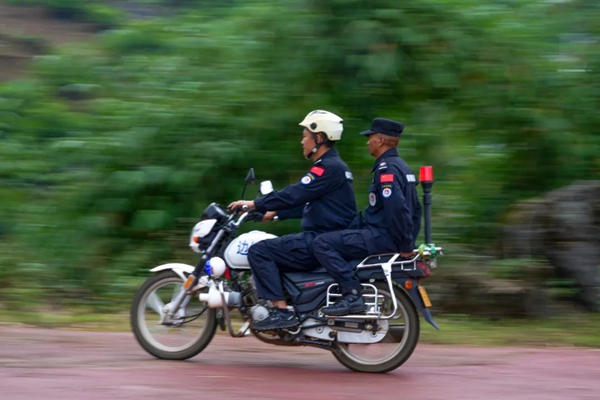 (刺樹(shù)丫口邊境聯(lián)防所聯(lián)防隊(duì)員騎摩托巡邏)