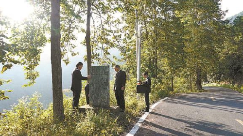 二○二四年十月,云南省漾濞縣檢察院檢察官對(duì)滇緬公路里程碑進(jìn)行現(xiàn)場(chǎng)勘驗(yàn)。