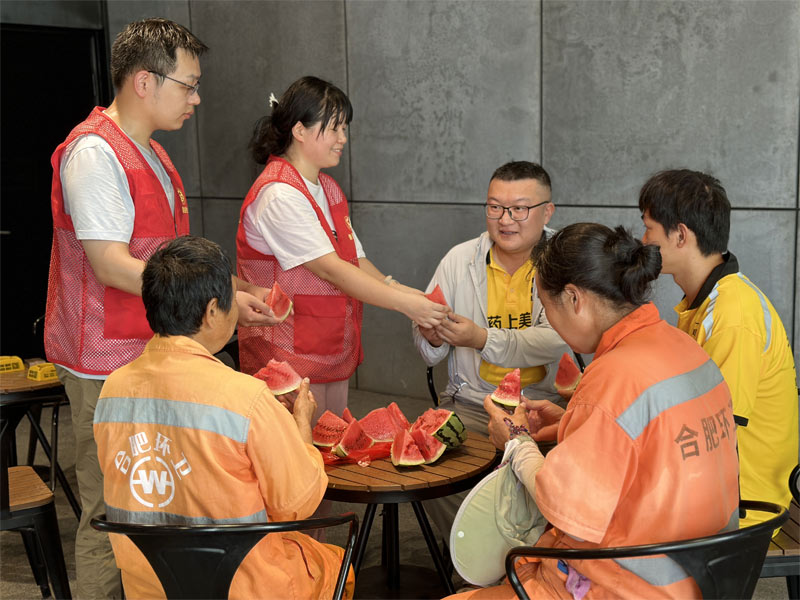 7月盛夏,驕陽似火。廬陽區(qū)政協(xié)委員、葉氏老房子餐飲公司負(fù)責(zé)人葉龍帶領(lǐng)企業(yè)員工,將1200瓶礦泉水、150個(gè)西瓜等防暑物資送至街道黨群服務(wù)中心,委托街道轉(zhuǎn)贈給交警、城管、環(huán)衛(wèi)工人及快遞外賣員等一線勞動者。這已是該企業(yè)連續(xù)第6年開展“夏日送清涼”公益行動,用實(shí)際行動詮釋民營企業(yè)的社會責(zé)任擔(dān)當(dāng)。