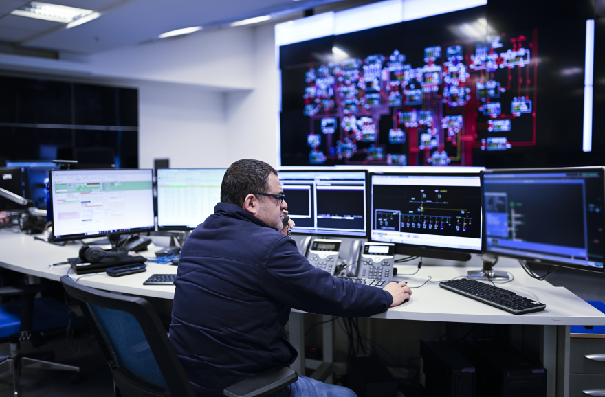在中國南方電網(wǎng)秘魯博路茲公司的電力調(diào)度控制中心,當(dāng)?shù)貑T工正開展日常電網(wǎng)監(jiān)控工作(南方電網(wǎng)供圖)