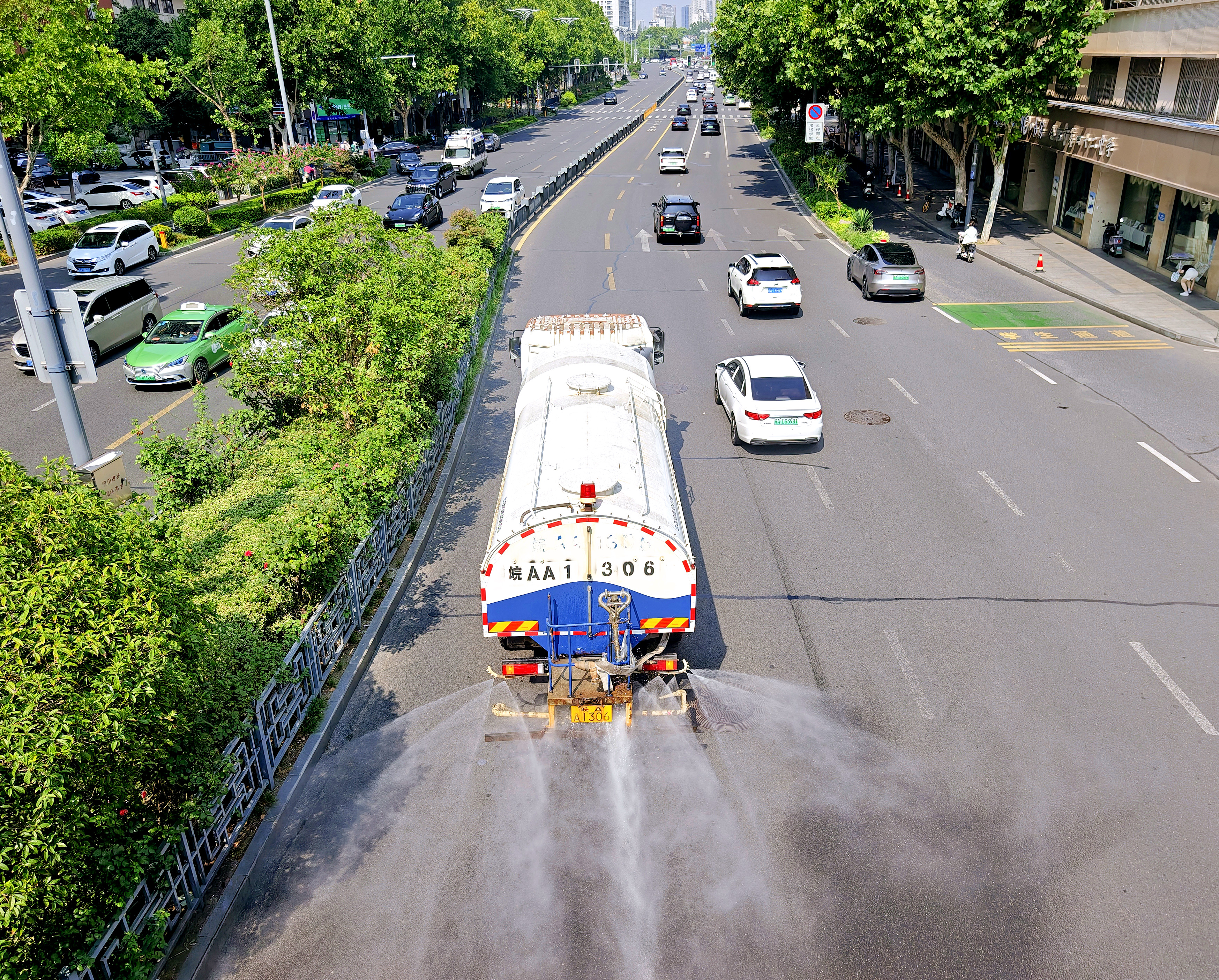 炎炎盛夏,漫步廬陽,路邊綠化帶草木蔥蘢,街角非機(jī)動(dòng)車整齊排列,商鋪門前清爽整潔,空中線纜梳理得井然有序,抬頭便是通透藍(lán)天。