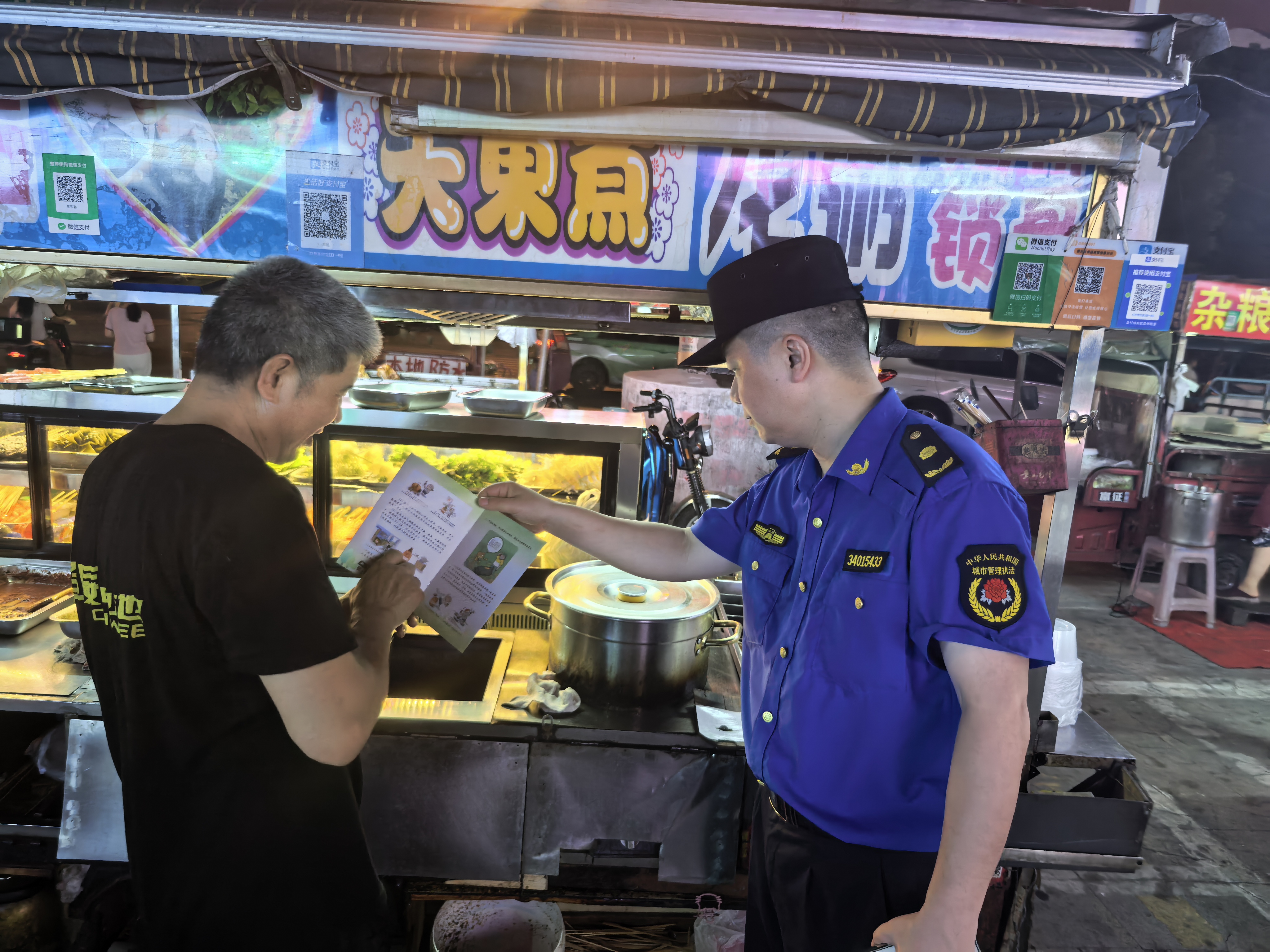 (攤點燃氣檢查,執(zhí)法隊員向攤主講解燃氣安全知識)