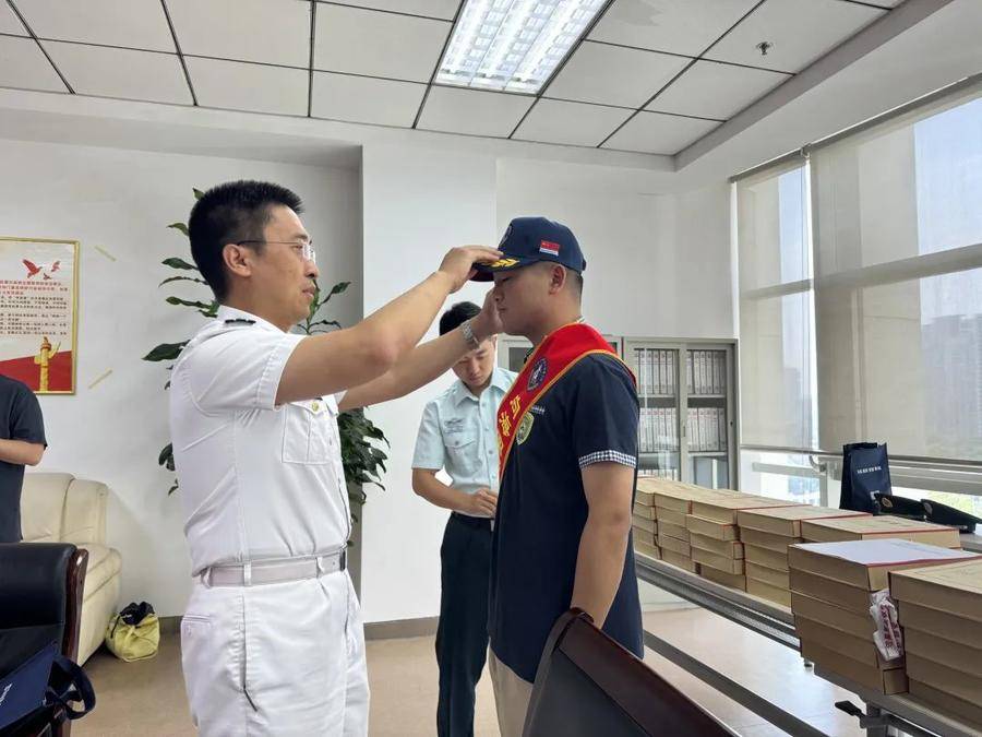 海軍潛艇學院老師為蘇陽佩戴學生帽。