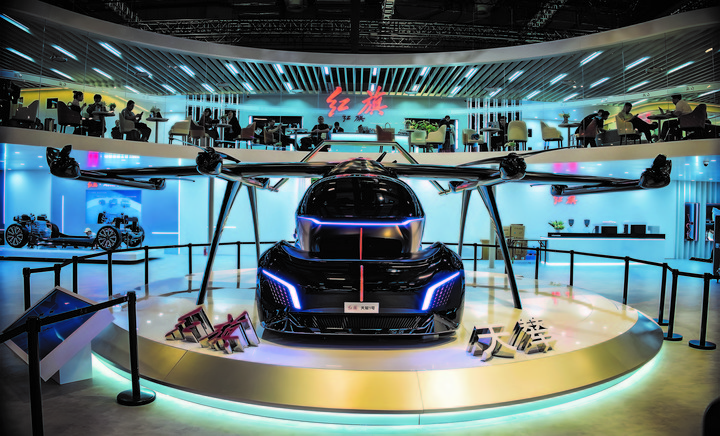 千萬級紅旗國禮“蘭亭雅韻”定制版以王羲之的《蘭亭集序》為靈感,巧妙運用大漆、黃金鐫刻、粵繡、琺瑯等非遺技藝,將匠藝與科技相融合,吸引了眾多游客圍觀拍照。紅旗“天輦1號”飛行汽車也在上海車展首發(fā)。