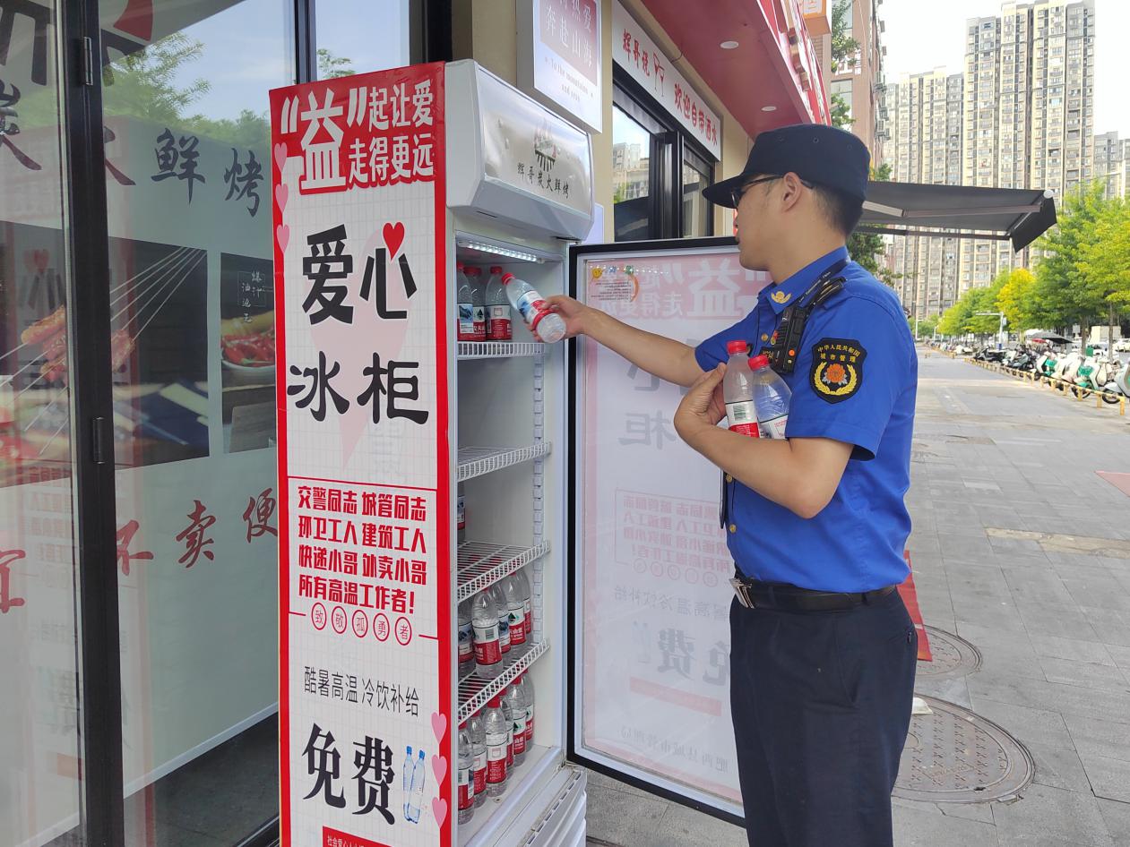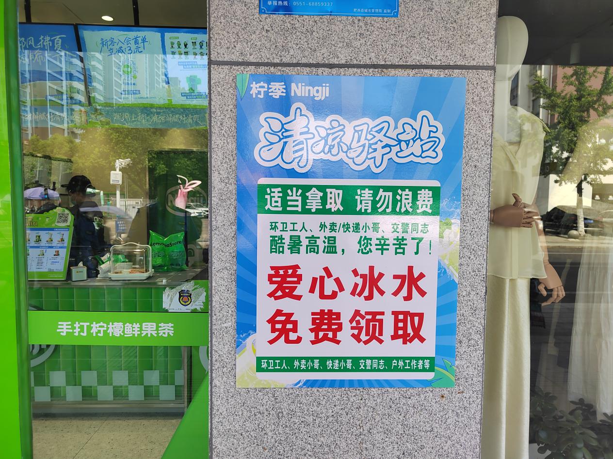 當(dāng)前已正式進(jìn)入“三伏天”,但街頭巷尾的外賣小哥、環(huán)衛(wèi)工人、快遞員等依然忙碌不停。為緩解他們的防暑降溫及飲水困難,肥西縣城管局聯(lián)合沿街商戶,在城區(qū)人流量較大的路段設(shè)置了“清涼驛站”,其中部分商戶還自發(fā)增設(shè)了“愛心冰柜”,免費(fèi)提供冰鎮(zhèn)礦泉水,并由商戶及肥西縣城管局及時(shí)補(bǔ)充礦泉水。