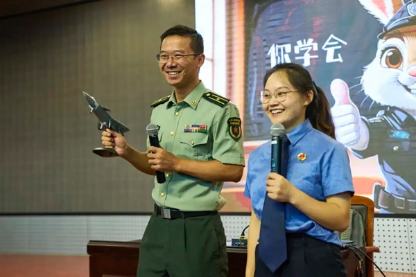 未檢干警巧妙結(jié)合動漫PPT,將復(fù)雜的法律條文轉(zhuǎn)化為一個個生動的故事,讓孩子們在歡聲笑語中收獲了知識。軍事檢察院檢察官也積極參與其中,與孩子們親密互動,提出了“我國有幾大戰(zhàn)區(qū),幾個兵種?什么是四大檢察?”等問題,激發(fā)了孩子們對國家大事的好奇心與探索欲。同學(xué)們紛紛舉手,踴躍搶答,現(xiàn)場氣氛熱烈非凡。