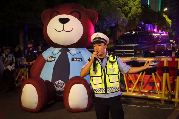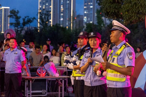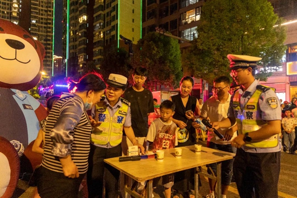 活動中,交通安全實景體驗區(qū)備受關注。安全頭盔佩戴、酒醉駕危害等場景演示,讓群眾近距離感受交通安全的重要性。而夜市舞臺上的節(jié)目表演更是將氣氛推向高潮:交警以云南本土山歌調調演唱原創(chuàng)交通安全歌曲,歌詞通俗易記,如“美酒雖甜莫貪量,開車沾酒惹禍秧”,引得現場觀眾拍手叫好;大關警方與昭通警方聯動合唱的原創(chuàng)歌曲《警察故事》,唱出了警察的責任與擔當,激發(fā)了小朋友的職業(yè)向往;民警改編演唱的流行金曲《Kiss Goodbye》,融入警務元素,贏得游客陣陣歡呼。