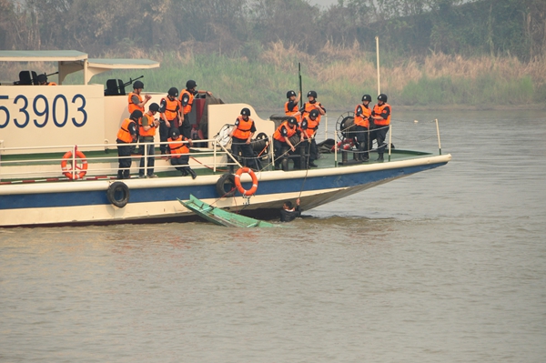 同年10月至11月,四國(guó)先后召開(kāi)執(zhí)法安全合作會(huì)議與部長(zhǎng)級(jí)會(huì)議,迅速達(dá)成共識(shí)。中國(guó)警察臨危受命,僅用20天完成全國(guó)11個(gè)沿邊、沿海?。ㄊ校?80余名官兵集結(jié),25天搭建通訊網(wǎng)絡(luò),30天完成5艘執(zhí)法船艇改裝,50天組建原云南省公安邊防總隊(duì)水上支隊(duì)(現(xiàn)為云南省公安廳水上巡邏總隊(duì)),并于2011年12月10日成功發(fā)起首次中老緬泰聯(lián)合巡邏執(zhí)法。