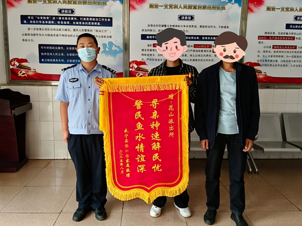 8月11日上午,來自貴州威寧的張大爺和家屬,拿著一面錦旗走進云南省曲靖市公安局沾益分局花山派出所,對民警懇切說道。
