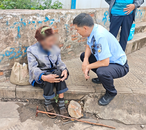 “這里有個年紀很大的老人躺倒在車邊,麻煩你們來看一下。”近日,云南省曲靖市公安局沾益分局花山派出所接到報警稱,一位頭發(fā)花白的老人躺倒在一賓館門口的車旁。接警后,派出所民警輔警立即出警。
