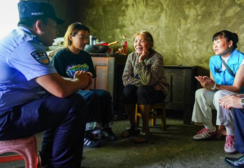 “陳警官你們這路走得喲,比咱山里的藤子繞得還彎,可你們挎包里揣來的不光是證件,還有比火塘還暖的心意,這山高路遠的,咱心里亮堂著呢!”村嫂妮鄧香打趣地說道。
