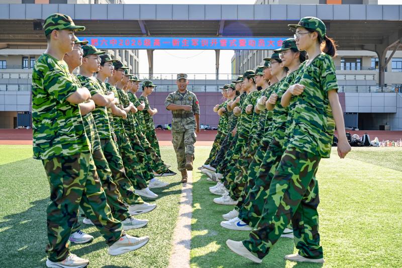 2025年8月22日,在合肥廬陽經濟開發(fā)區(qū)合肥六中菱湖校區(qū),高一新生正在參加軍訓。新學期即將到來,合肥六中組織開展為期一周的軍體訓練,旨在增強學生體質,磨煉新生意志,樹立組織紀律觀念,培養(yǎng)艱苦奮斗的作風。(廬陽區(qū)人民政府)