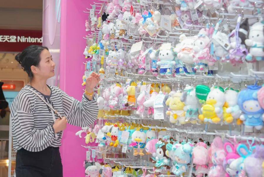 在合肥萬象城三麗鷗門店,市民正在選購“包掛”。