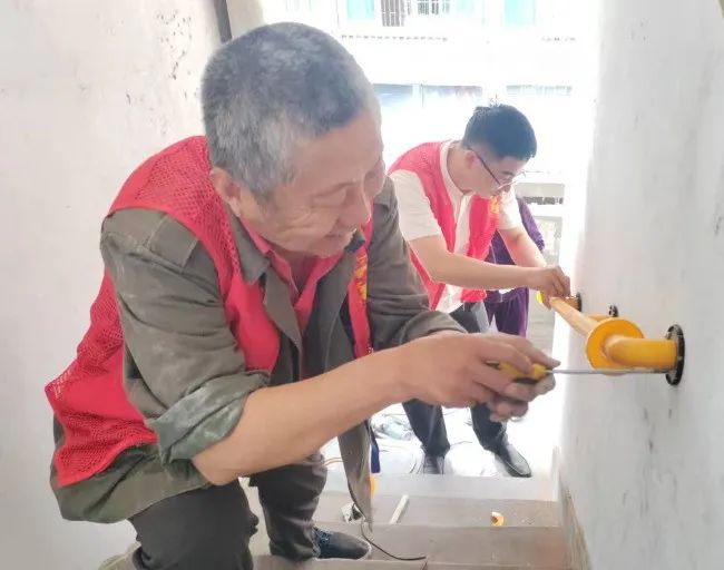 轄區(qū)志愿者為困難老人居住的小區(qū)樓道安裝扶手