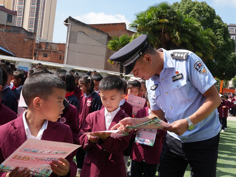 講好“開學第一課”。新學期伊始,反詐先“開課”。開學第一天,民警輔警到轄區(qū)中小學、幼兒園送上反詐“大禮包”,提醒學生們警惕游戲、刷單類等騙局,筑牢反詐安全防線。