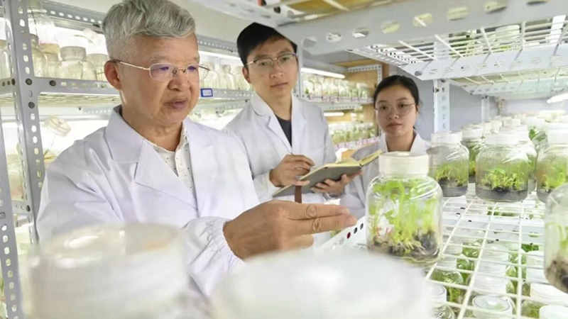 十年深耕試驗田,上千次組培實驗,鄭泗軍帶領(lǐng)團隊收集、保存了120多份國內(nèi)外特異香蕉種質(zhì)資源和100余份云南農(nóng)家品種資源,篩選了一批對香蕉枯萎病有拮抗作用的菌株,研創(chuàng)種養(yǎng)結(jié)合、生態(tài)循環(huán)、生草覆蓋和有益微生物利用等技術(shù),制定了香蕉枯萎病綜合防控技術(shù)規(guī)程,成功破解香蕉“癌癥”。培育的抗病新品種“云蕉1號”,枯萎病抗性明顯優(yōu)于巴西蕉和“桂蕉1號”,2024年獲農(nóng)業(yè)農(nóng)村部新品種授權(quán),目前已在河口、江城和西雙版納等地適應(yīng)性示范種植1000余畝。