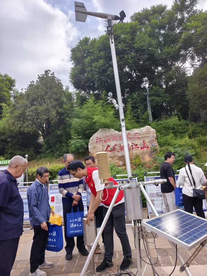 在氣象局展區(qū),工作人員重點展示了便攜式應急自動氣象站,應急移動氣象站可以實時觀測風向風速、溫度、降水量等6個氣象要素。此外,現(xiàn)場開展模擬觀測12次,圖文并茂講解6類要素的觀測原理方法和常見的氣象災害防御辦法,吸引大批群眾親手操作體驗,有效提升了公眾防災減災能力。