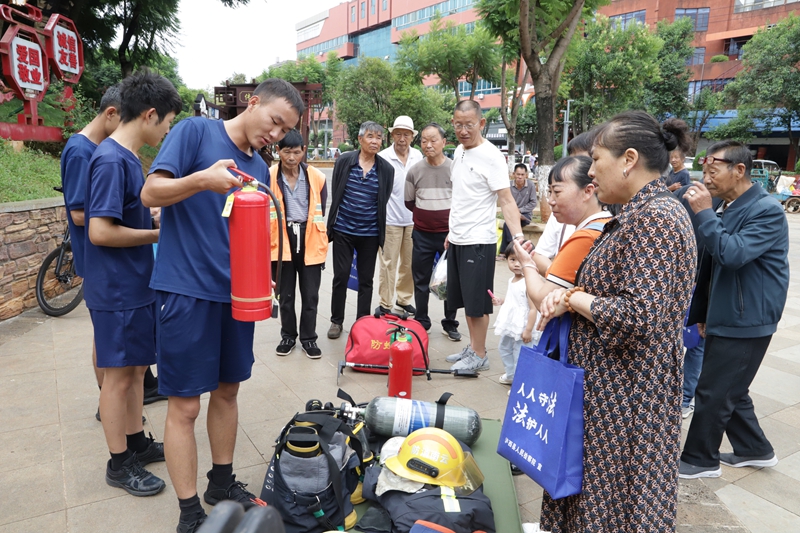 其中,瀘西縣消防救援大隊展區(qū)尤為引人關注,展區(qū)內集中陳列了包括搶險救援服、液壓破拆工具組、滅火器、防煙面罩、獨立式感煙報警器等在內的十余件專業(yè)裝備。消防員現(xiàn)場開展8場實操演示,結合2起真實火災案例,深入講解初期火災撲救和逃生自救知識,進一步強化群眾的安全防范意識。