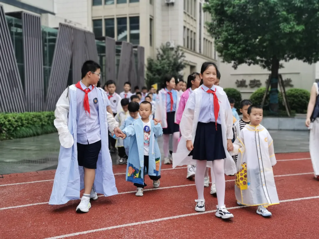 五年級的學長、學姐俯身牽起一年級新生的手,掌心相貼的溫度驅(qū)散了陌生與不安。兩只大小迥異的手掌在晨光中輕晃,腳步同頻踏向嶄新征程。這一刻,稚嫩與穩(wěn)重交織成最溫柔的序曲——以掌心傳遞歸屬,用腳步丈量成長,為典禮鋪就溫暖而堅定的情感底色。
