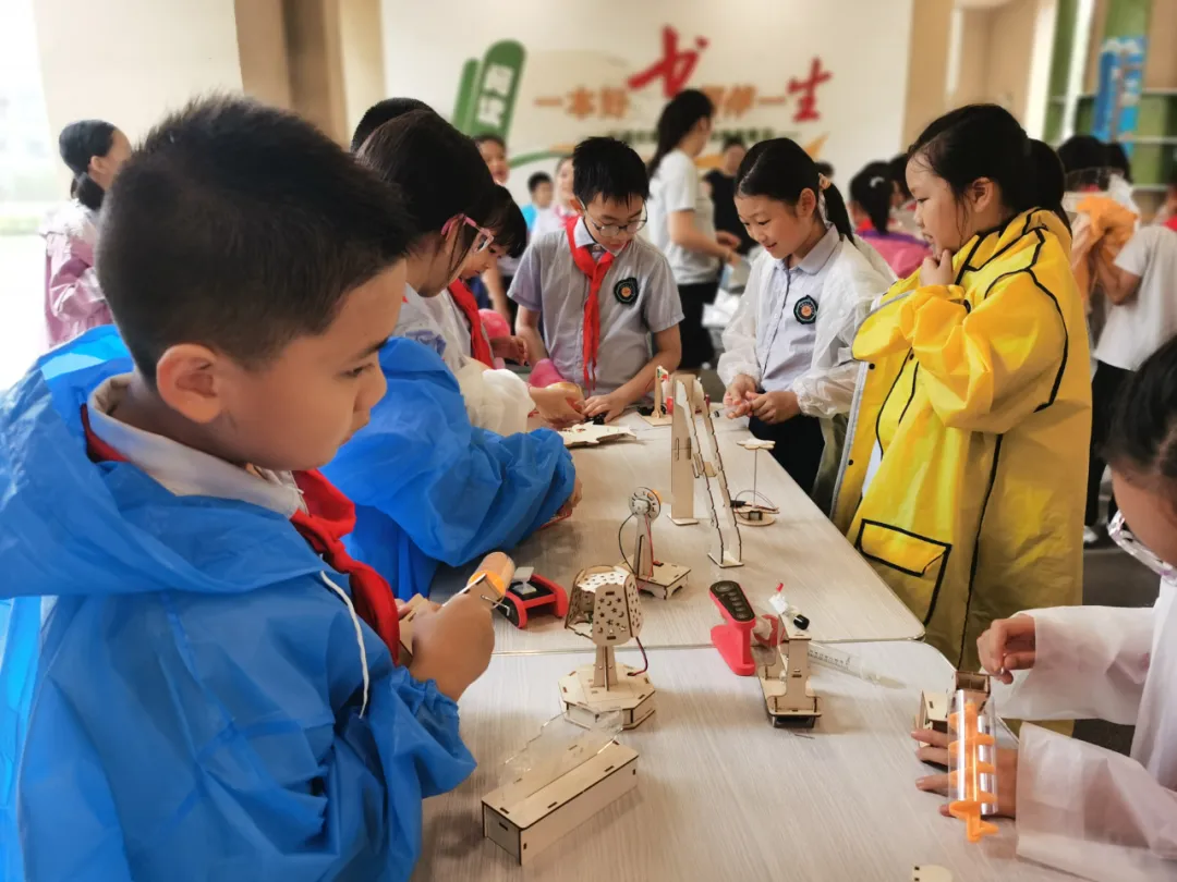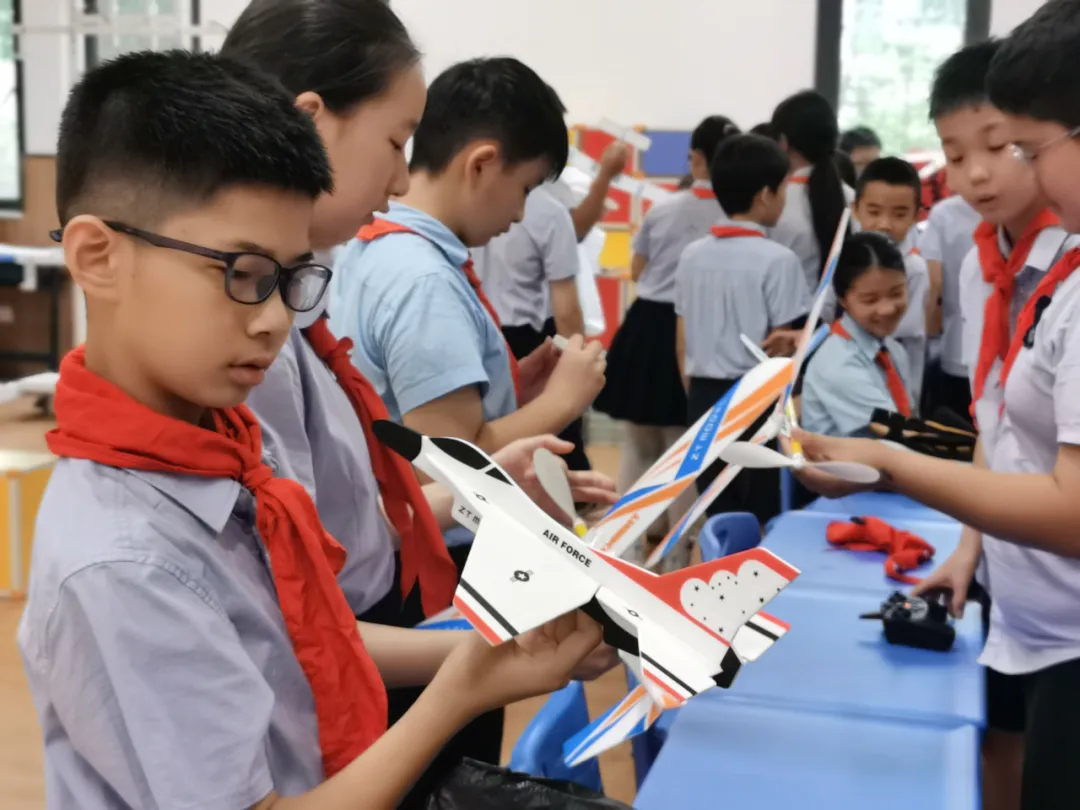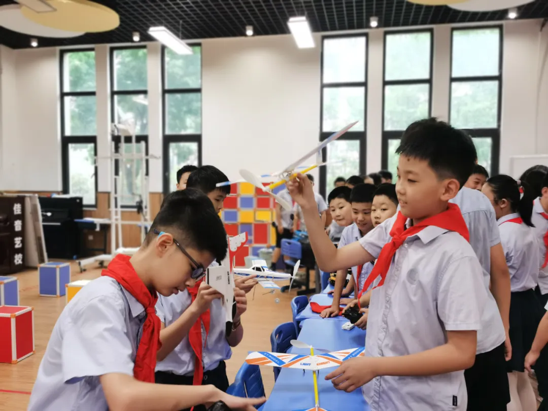 合肥市科技館老師們帶來的科普劇《聰明的飲水鳥》在報告廳熱烈展開,與此同時,架空層化身為“未來城市沙盤”——校科技社團展示著各種各樣的科技活動;移步弘遠樓,3D打印、AI人工智能、機器人、小小發(fā)明家吸引著學生的眼球;達德樓則涌動趣味浪潮,編程迷宮中閃爍的LED矩陣墻吸引學生破解指令;舞蹈房陳列著各種各樣的航模復刻群,最終抵達體育館。仰望無人機編隊以“星鏈織網(wǎng)”造型劃破穹頂——這條貫穿四維空間的鏈,讓航天工程、智能算法與基礎(chǔ)科學在60分鐘內(nèi)觸手可及。